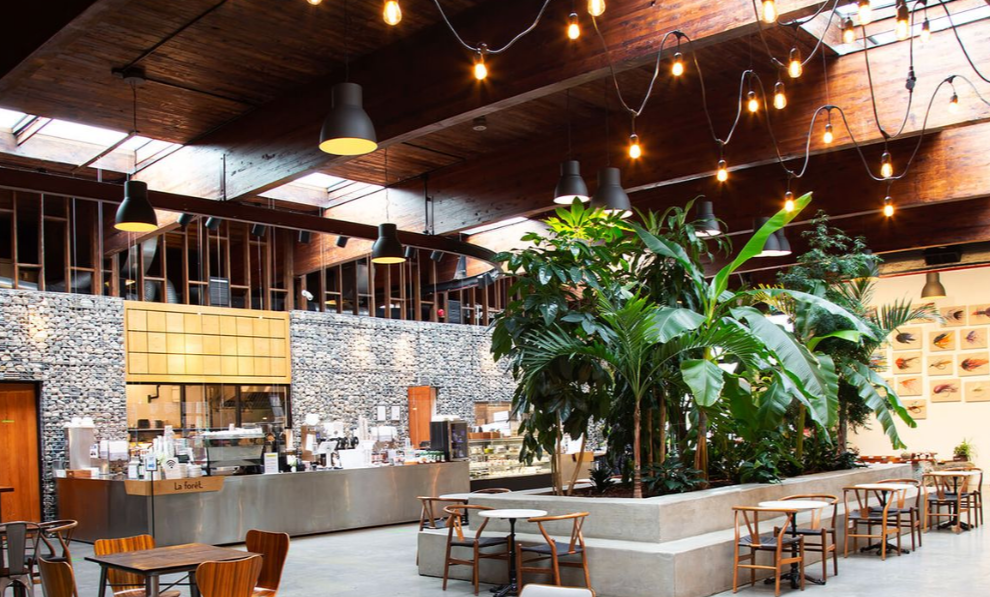 카페 라 포레에 들어서는 순간, 자연과 모던한 디자인이 조화를 이룬 녹색 공간에 들어선 듯한 느낌이 듭니다. 인테리어는 목재 장식, 아늑한 좌석, 그리고 풍성한 식물들로 구성되어 평화롭고 활력을 주는 분위기를 자아냅니다. 걸려있는 식물들과 자연광이 가득한 이곳은 방문객에게 편안함과 안락함을 제공하며, 학생들과 전문가, 인스타그래머들의 인기 스팟으로도 잘 알려져 있습니다.