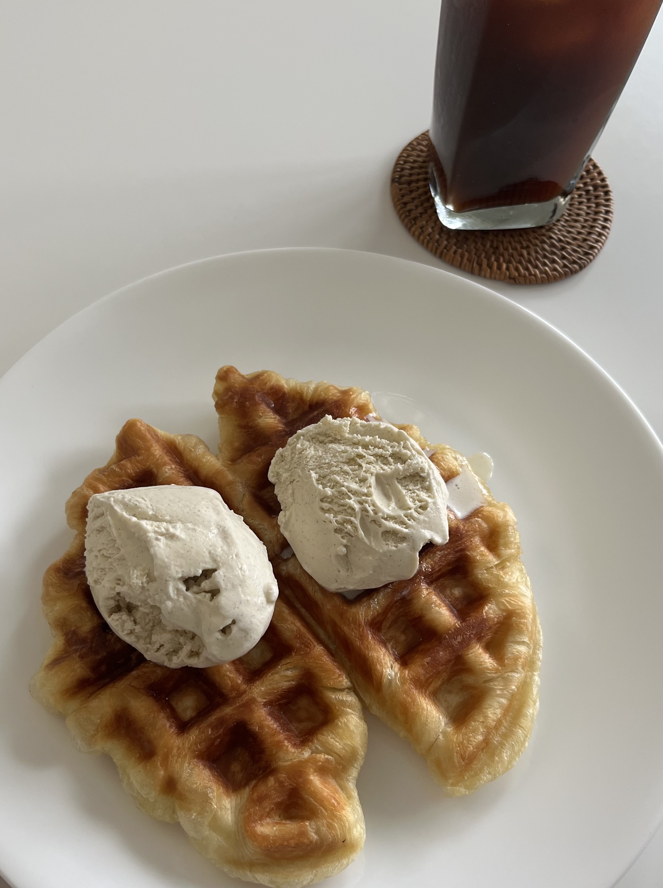 - 위에 아이스크림, 메이플 시럽, 과일을 얹으면 카페 메뉴 뺨치는 크로플 완성!